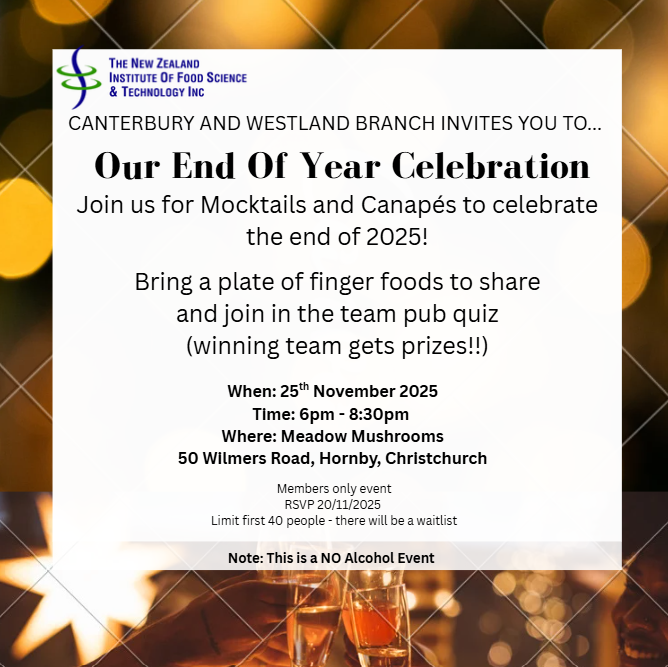 Join the NZIFST Canterbury Westland Branch for mocktails and canapes to celebrate the end of 2025.